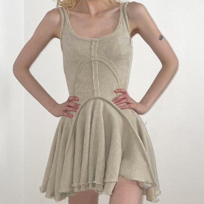 Women's Slim Party Khaki Spaghetti Strap Mini Dress