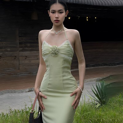 2023 new summer women's clothing sexy babes V-neck tie temperament halter neck dress
