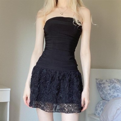2023 summer new women's clothing sexy hot girl one-shoulder tube top lace pure desire pleated dress female