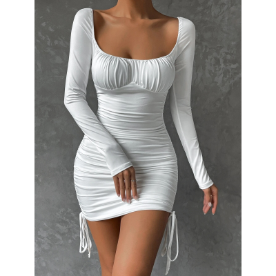 Sweetheart Neck Drawstring Side Ruched Bodycon Dress