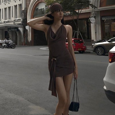 2023 summer new fashion sexy hot girl halter neck slim dress