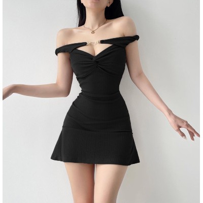 Sleeveless Off Shoulder Solid Twist Mini A-Line Dress