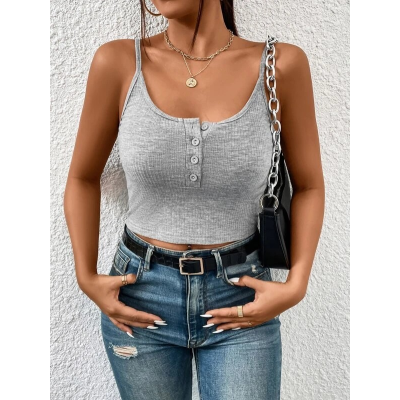 Sexy Half Button Cropped Camisole Top