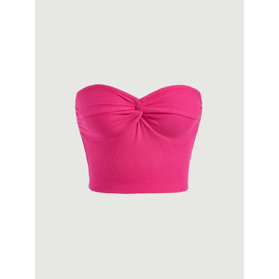 Twist-front ribbed-knit bandeau top