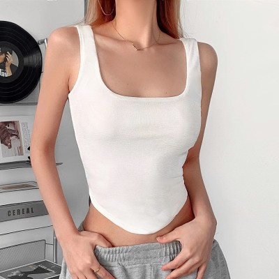 Summer new French style small square collar slim-fit suspenders loose bottoming short sleeveless vest