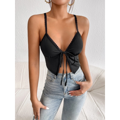 Women's Cut Lace Camisole Front Solid Color Fashion Sexy Tank Top