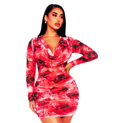 Sexy nightclub waist slimming temperament sweet and spicy V-neck short dress for women