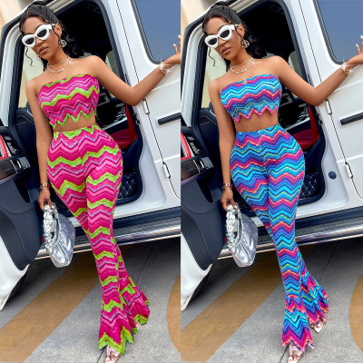 Women's Contrast Color Fashion Pants Suit Rainbow Pattern
