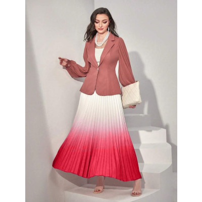 Gradient skirt with elastic waist, loose wide hem, drapey A-line pleated skirt
