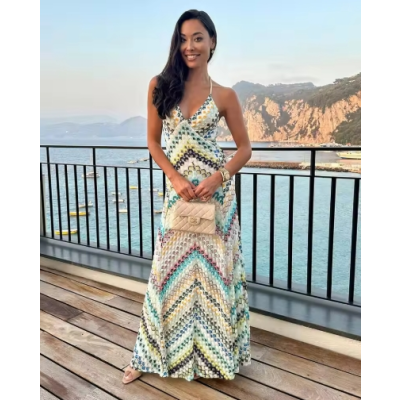 Fashion sexy tight 3D printed stand collar sleeveless mid-length