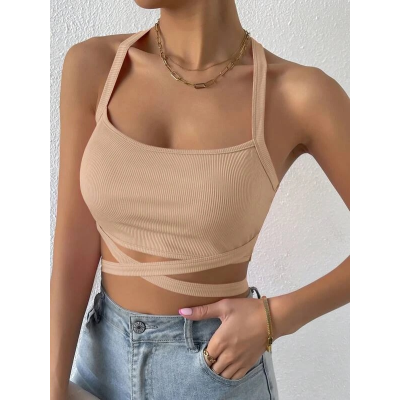 Women's T-Shirt Women's Cross Tie Backless Cropped T-Shirt