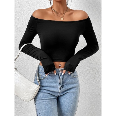 Off-Shoulder Fitted Cropped T-Shirt