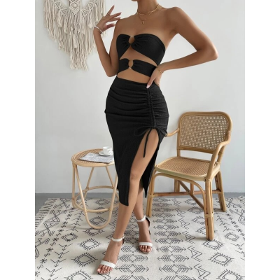 Ring Cutout Front Slit Thigh Bandeau Dress