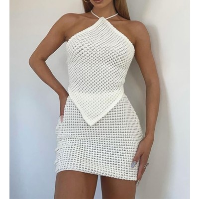 Sexy open-waist crop top tight-fitting hollow slit hip-covering skirt suit