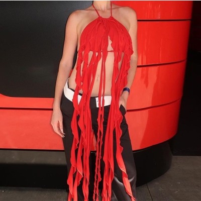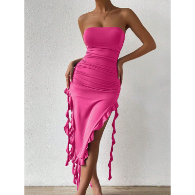 Ruffle Trim Ruched Split Thigh Tube Dress