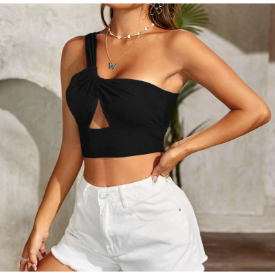 Sexy Asymmetric Cutout Solid Color Women's Top